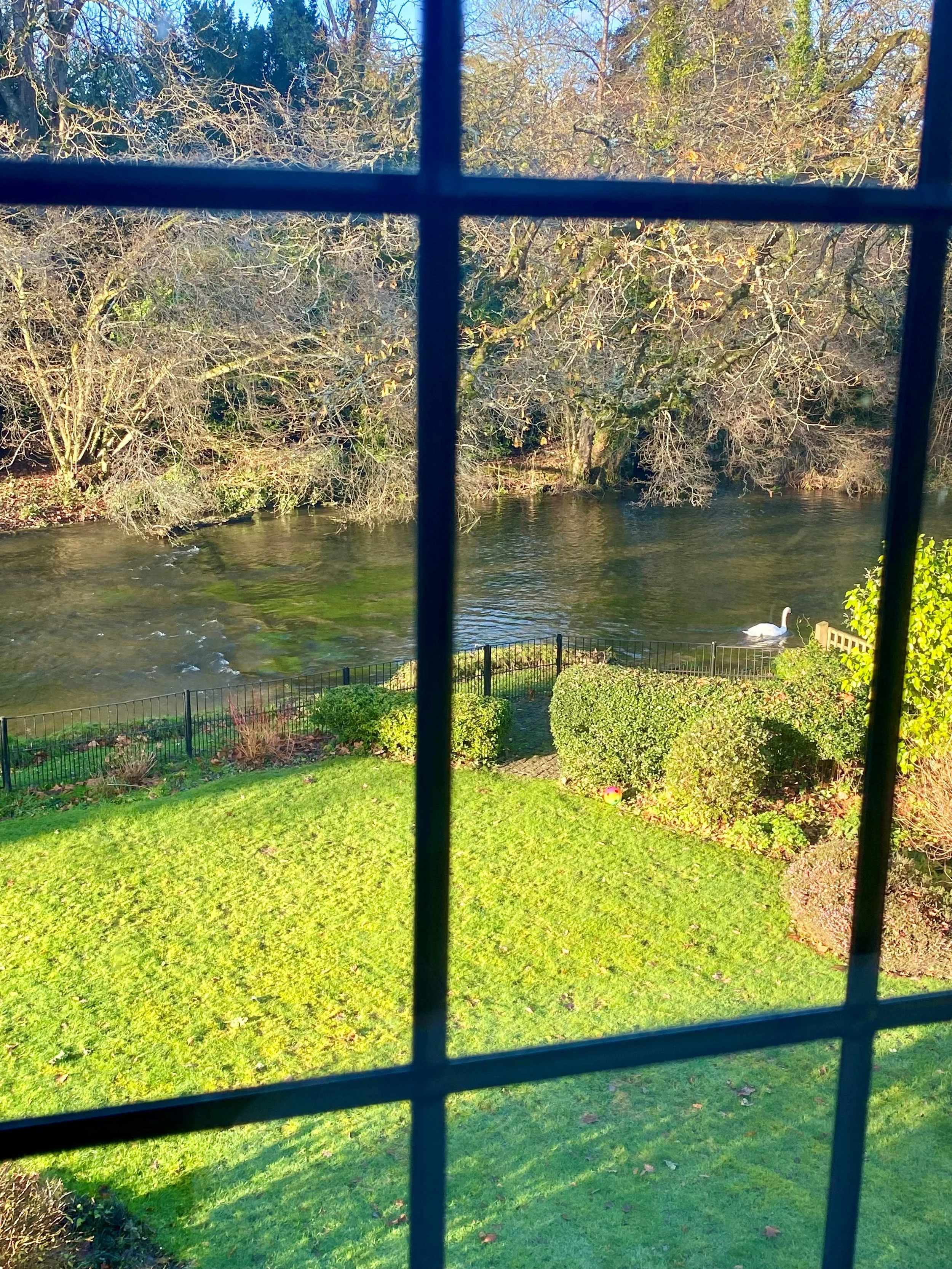 Bedroom views of swans on the river