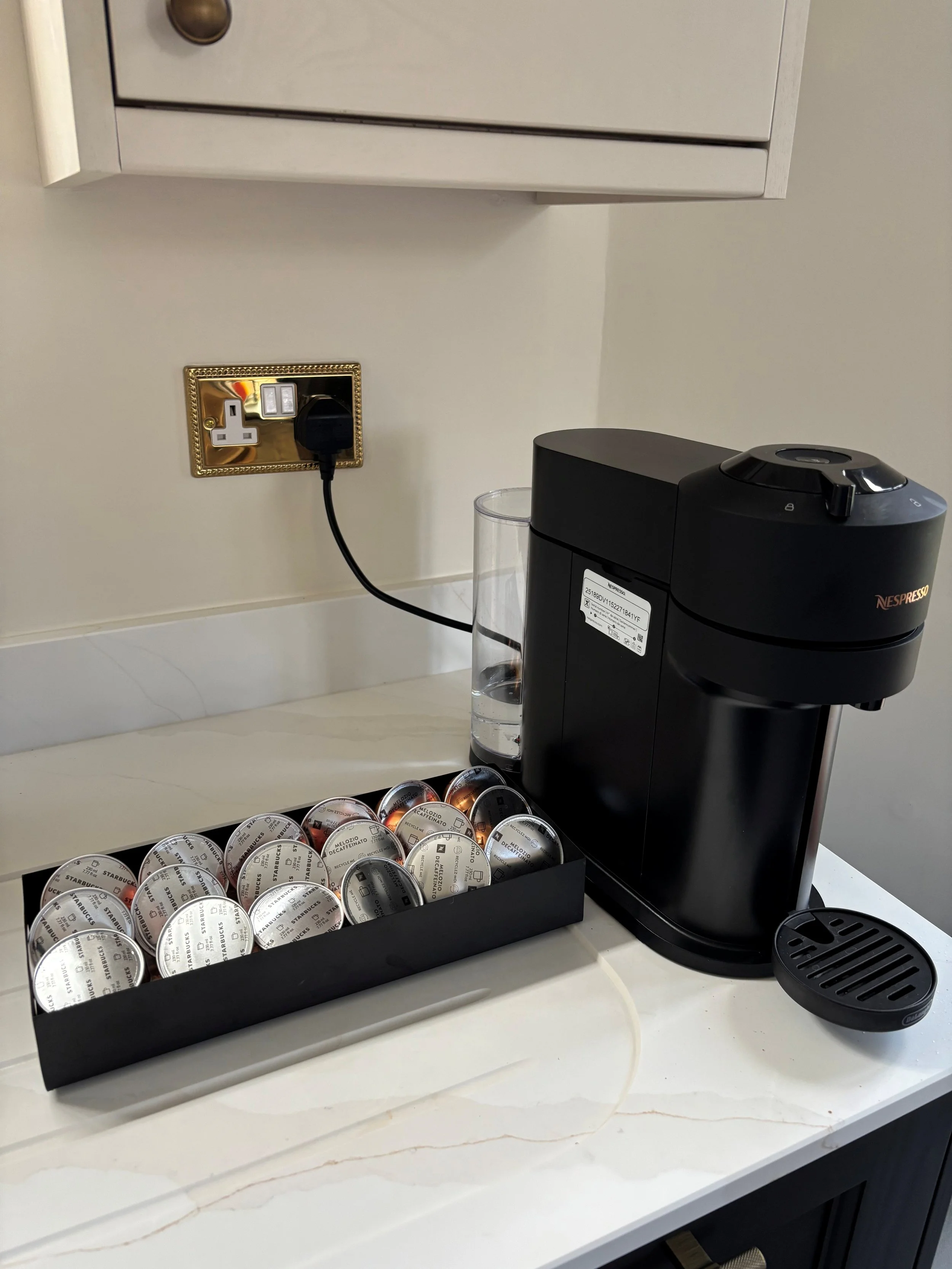 Your Morning Brew, Elevated Skip the local coffee shop and enjoy a barista-quality start to your day. Our dedicated coffee station features a sleek Nespresso machine stocked with a curated selection of Starbucks pods. Whether you’re looking for a bold caffeine kick to start your adventures or a smooth decaf to enjoy by the river, we’ve got you covered.